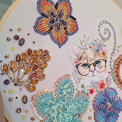 Te gustaría aprender a distintas flores en pedrería y acompañar a tu mascota en un cuadro decorativo?